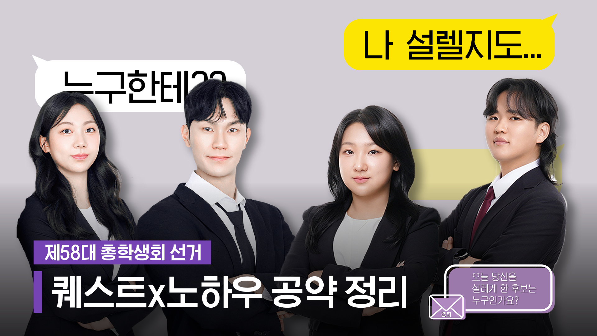 시사/교양 경희의 마음을 움직일 두 선본, KHU:EST와 KnowHow | [오늘 당신을 설레게 했던 후보는 누구인가요?]신유빈, 신정연, 이공선라, 이린, 최현서 기자 2025-11-22 hit 33 -